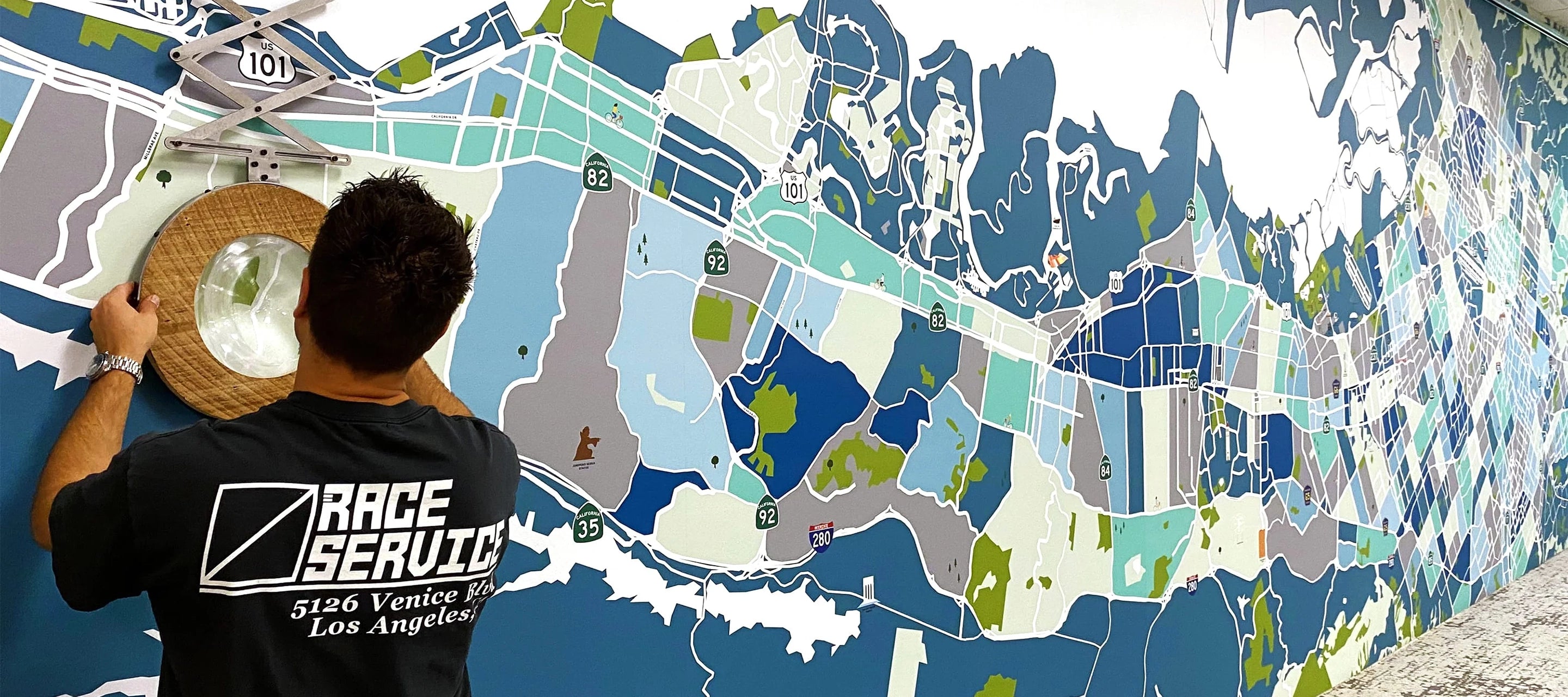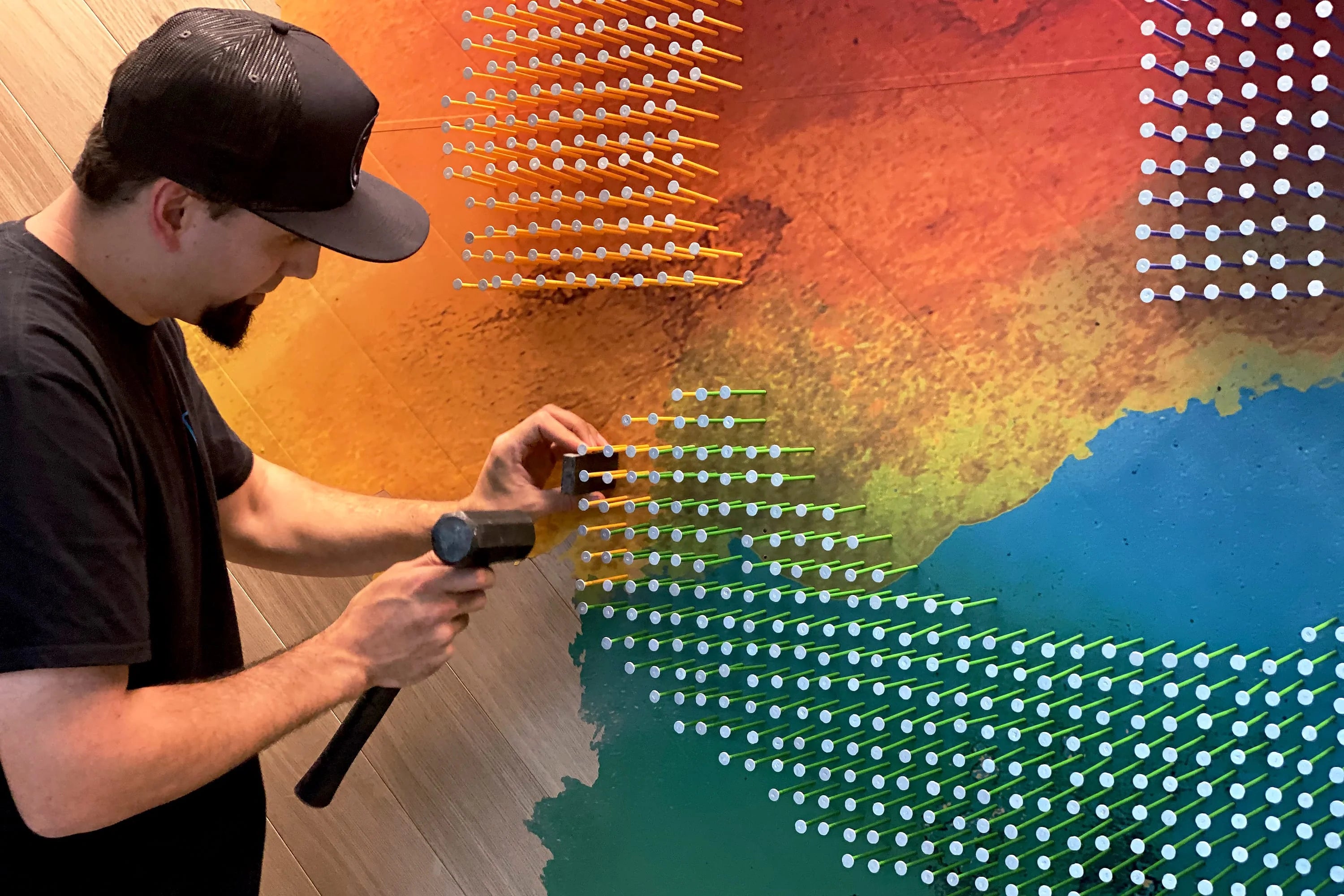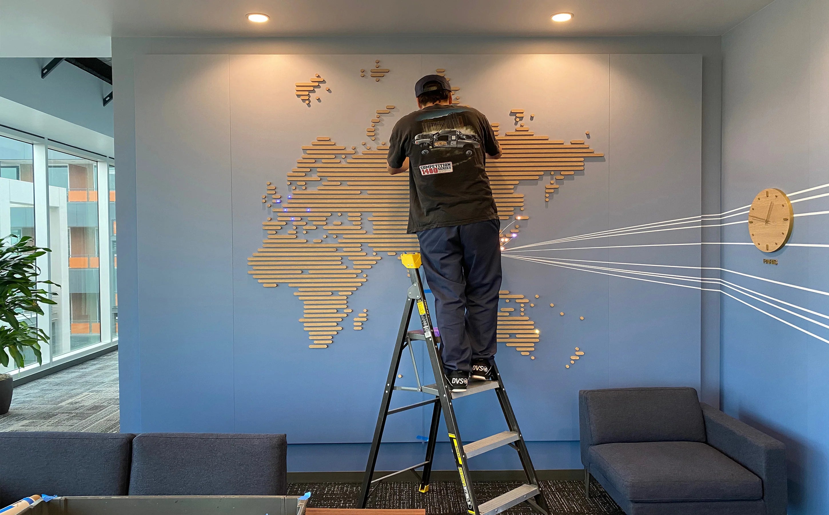 Today we create wall art that starts with a pen and an idea. We develop branded interiors, we stretch room-size canvases, we sustainably print custom privacy film and laser-cut artwork of all types to make a space that matters to you. We're architects and designers, illustrators and artisans, and we join forces to help make your environment something you want to live and work in.