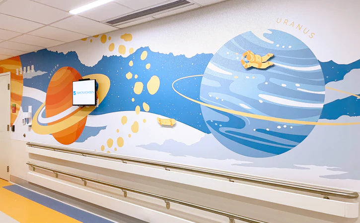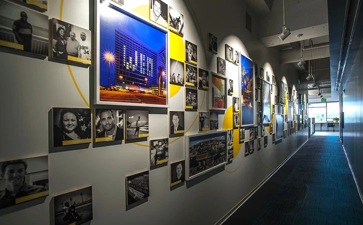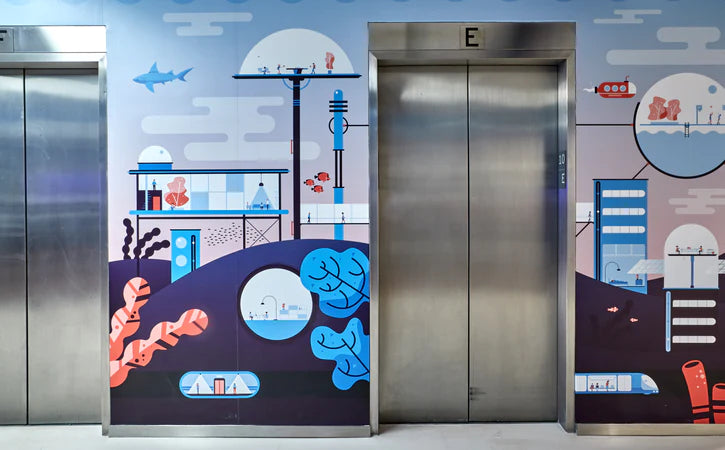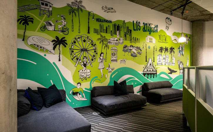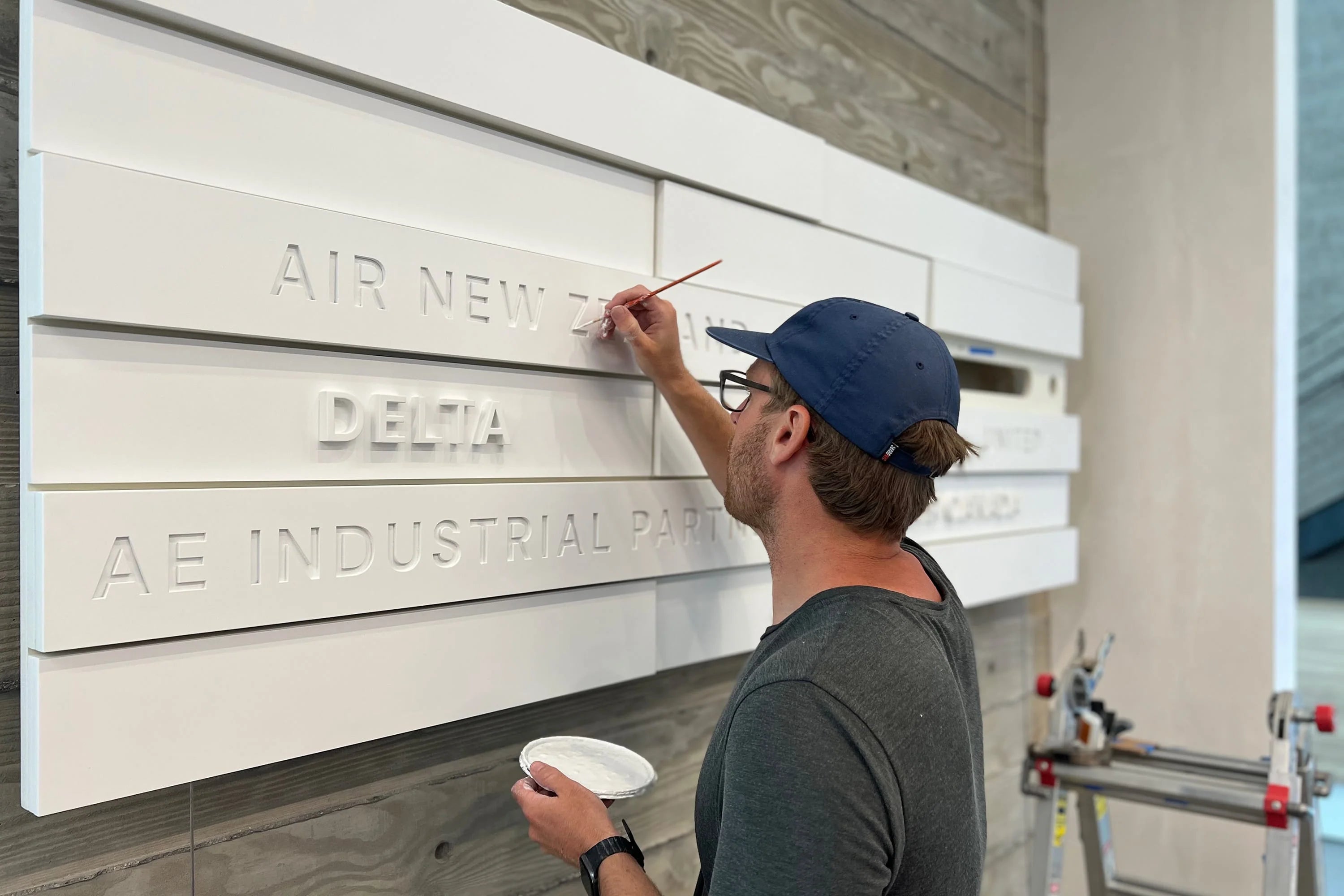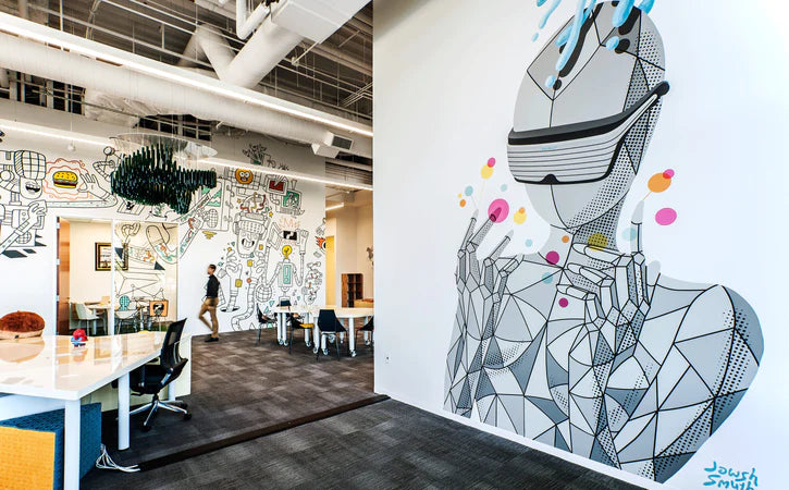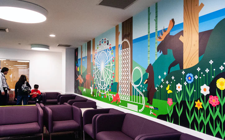 Today we create wall art that starts with a pen and an idea. We develop branded interiors, we stretch room-size canvases, we sustainably print custom privacy film and laser-cut artwork of all types to make a space that matters to you. We're architects and designers, illustrators and artisans, and we join forces to help make your environment something you want to live and work in.
